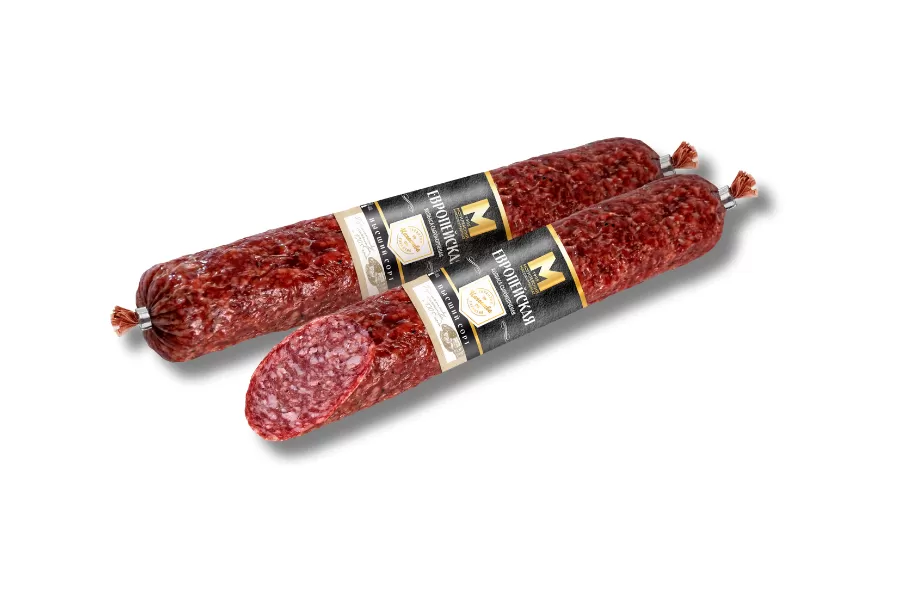 Колбаса с/к "Европейская" обладает мягким вкусом с идеально сбалансированным содержанием специй. Сырокопченая колбаса — продукт любимый многими. Обязательный гость праздничного стола, а некоторые не представляют завтрак без нее. Пряный аромат, умеренная жирность и разнообразие вкусовых оттенков завоевали любовь потребителей. Изготовленная с соблюдением технологии колбаса является деликатесом. Продукт замечательно вписывается в разные блюда, от бутербродов до нарезок.